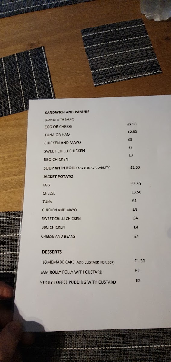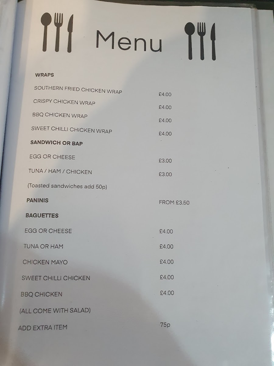 Baguettes include fillings such as Tuna, Chicken Mayo, Sweet Chilli Chicken, and BBQ Chicken, offering quick and convenient light meals ideal for casual dining or take-away.
